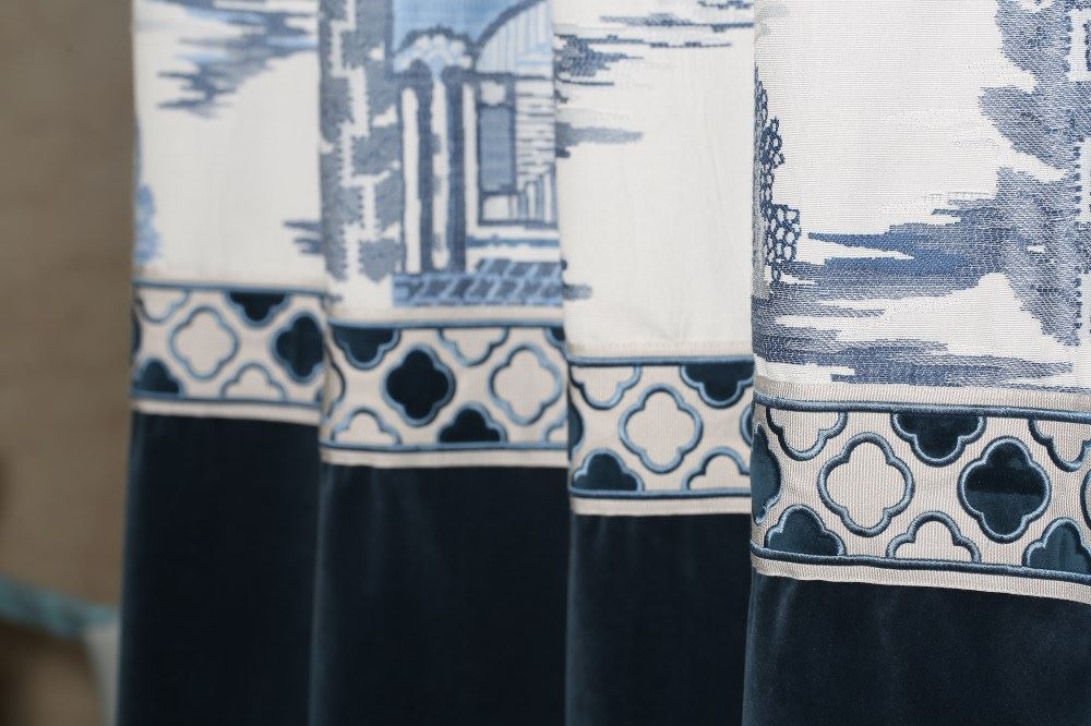 新意配色,搭配到窗簾上,既有新中式的江南意境,又有的年輕新潮的時尚律動。