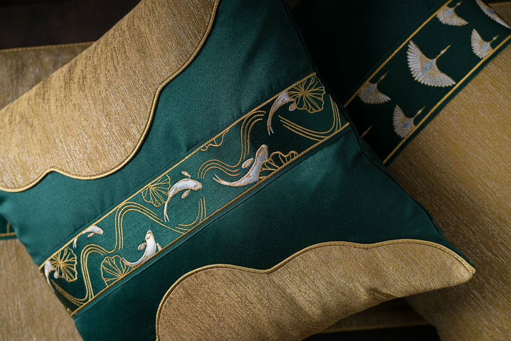 荷花、錦鯉、祥云、流水,鎏金閣系列將傳統(tǒng)元素與摩登時尚的新設計相融合,以席紋底帶呈現(xiàn)華貴光感,展示新中式的時尚與富麗堂皇。