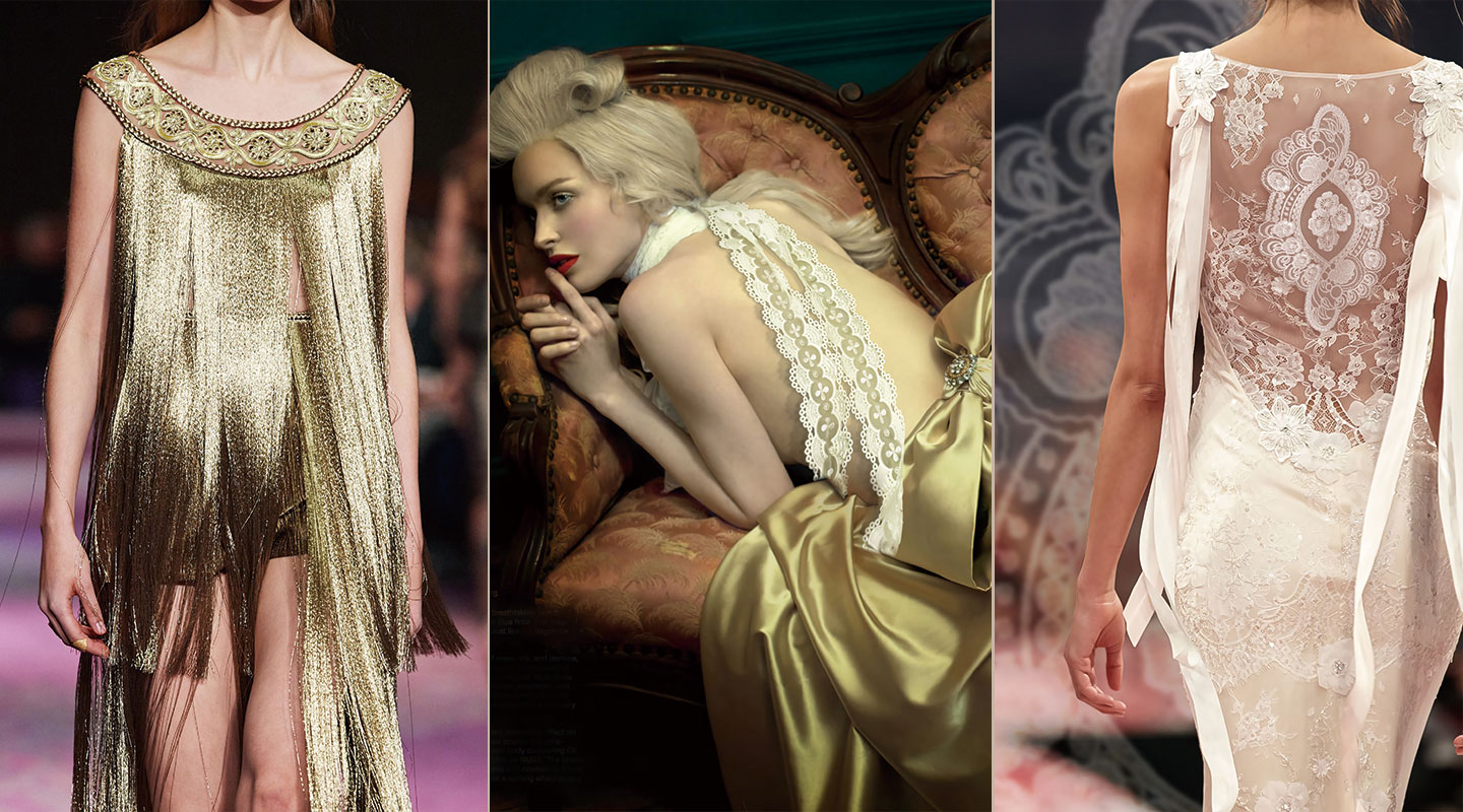 楓丹白露由朱自清先生翻譯, Fontainebleau法語中的原意是美麗的泉水。 也正如法國(guó)楓丹白露宮,所彰顯的精致奢華。 整套系列采用水溶刺繡工藝,為有別于傳統(tǒng),設(shè)計(jì)師結(jié)合高亮珍珠、亮片與奧鉆元素完美詮釋法式浪漫的優(yōu)雅與華麗。